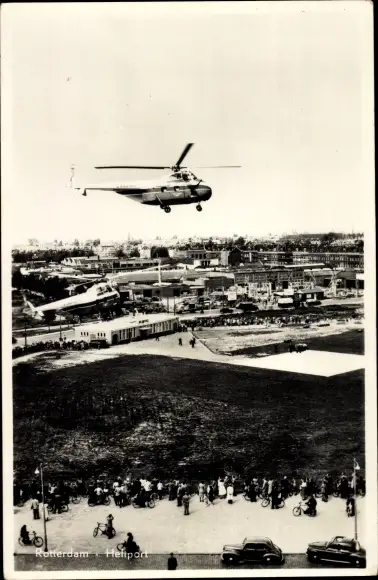 Ak Rotterdam Südholland Niederlande, Heliport, Hubschrauber über dem Landeplatz, Zuschauer