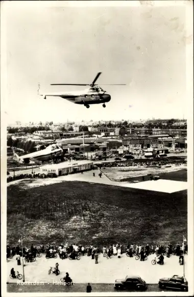 Ak Rotterdam Südholland Niederlande, Heliport, Hubschrauber über dem Landeplatz, Zuschauer