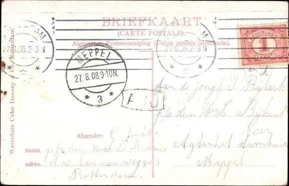 Zustand, siehe Scan, gelaufen, 1908 - ca 9 cm X 14 cm
