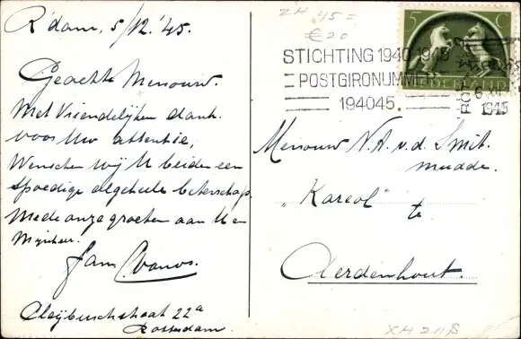Zustand, siehe Scan, gelaufen, 1945 - ca 14 cm X 9 cm