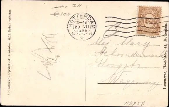 Zustand, siehe Scan, gelaufen, 1922 - ca 14 cm X 9 cm