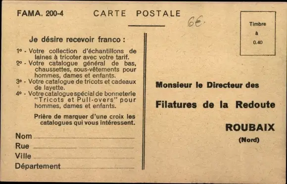 Ak Roubaix Nord, Filatures de la Redoute, Reklame