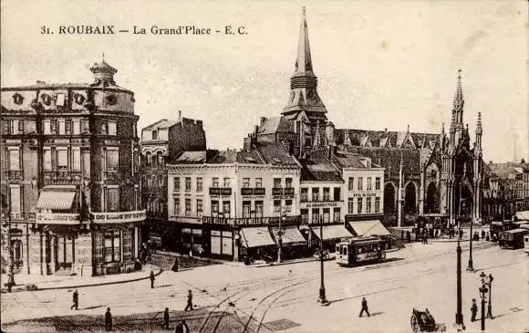 Ak Roubaix Nord, Grand'Place, Straßenbahn, Kirche
