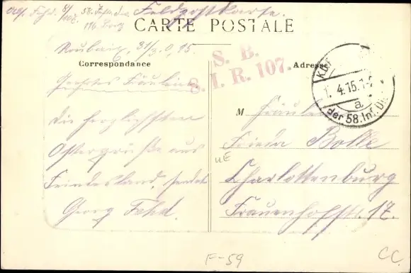 Zustand, siehe Scan, gelaufen, 1915 - ca 14 cm X 9 cm
