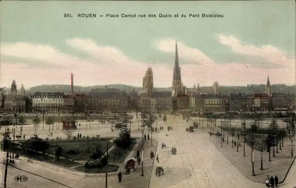 Ak Rouen Seine Maritime, Historische Ansicht von Place Carnot, Quais, Pont Boieldieu