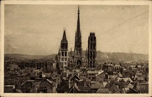 Ak Rouen Seine Maritime, Panorama, Kathedrale