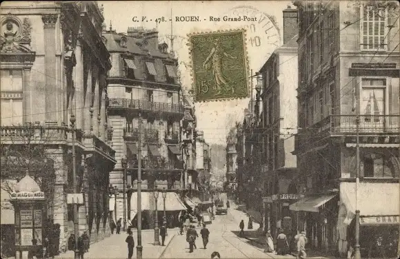 Ak Rouen Seine Maritime, Rue Grand Pont