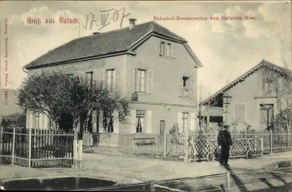 Ak Rouffach Rufach Elsass Haut Rhin, Bahnhof-Restauration