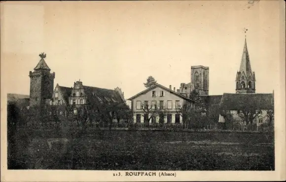 Ak Rouffach Rufach Elsass Haut Rhin, Ortsansicht, Kirchturm