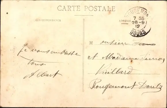 Ak Rougemont Doubs, Gebäude auf Berg, Löwe