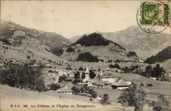 Ak Rougemont Kanton Waadt, Schloss und Kirche, Gesamtansicht