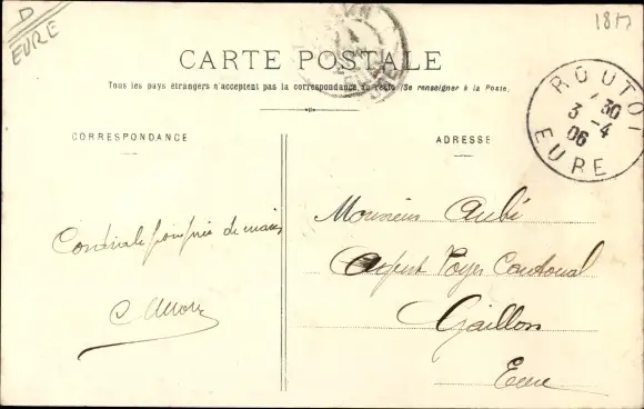 Ak Routot Eure, Gendarmerie et Route de Pont Audemer