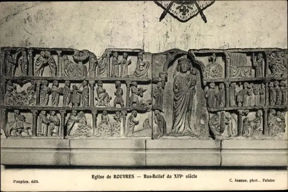 Ak Rouvres Calvados, L'Eglise, Bas Relief