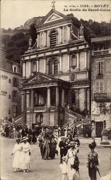 Ak Royat Puy de Dôme, La Sortie du Sacre-Coeur
