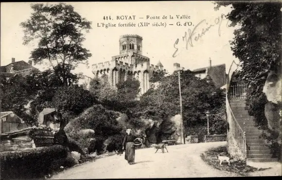 Ak Royat Puy de Dôme, Route de la Vallee, L'Eglise fortifiee