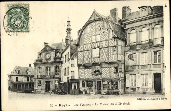 Ak Roye Somme, Place d’Armes, Haus aus dem 13. Jahrhundert