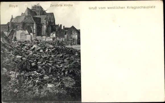 Ak Roye Somme, Zerstörte Kirche, Kriegszerstörungen, I WK