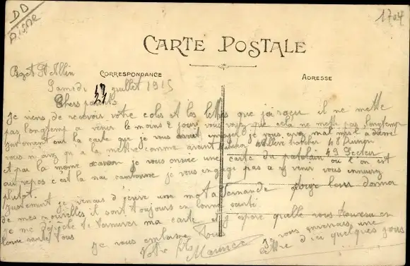 ungelaufen, datiert 1915, Rückseite beschrieben, sehr guter Zustand