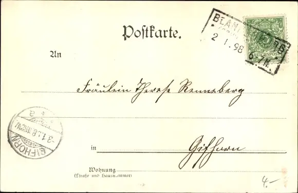 Zustand, siehe Scan, gelaufen, 1898 - ca 14 cm X 9 cm