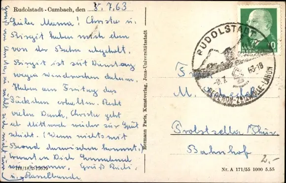Zustand, siehe Scan, gelaufen, 1963 - ca 14 cm X 9 cm