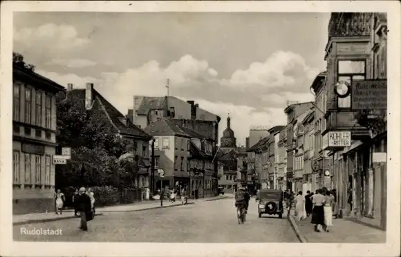 Ak Rudolstadt in Thüringen, Straßenpartie, Geschäfte