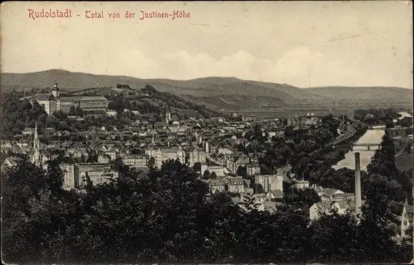 Ak Rudolstadt in Thüringen, Totalansicht von der Justinen-Höhe