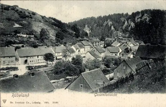 Ak Rübeland, Gesamtansicht vom Ort im Tal, Wohnhäuser