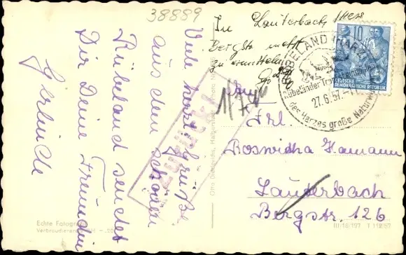 Zustand, siehe Scan, gelaufen, 1957 - ca 14 cm X 9 cm