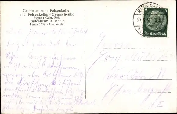 Ak Rüdesheim Rhein, Gasthaus zum Felsenkeller, Weinschenke, Oberstraße