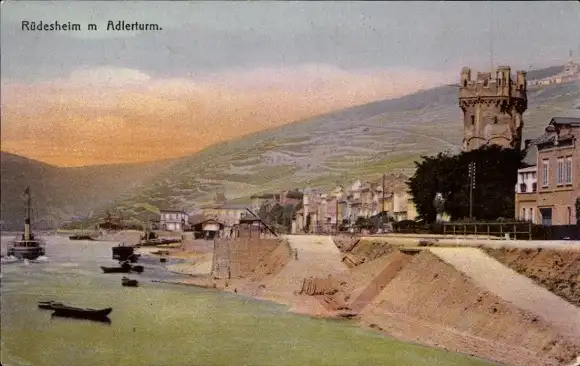 Ak Rüdesheim am Rhein, Adlerturm, Boote, Dampfer, Feldpostkarte