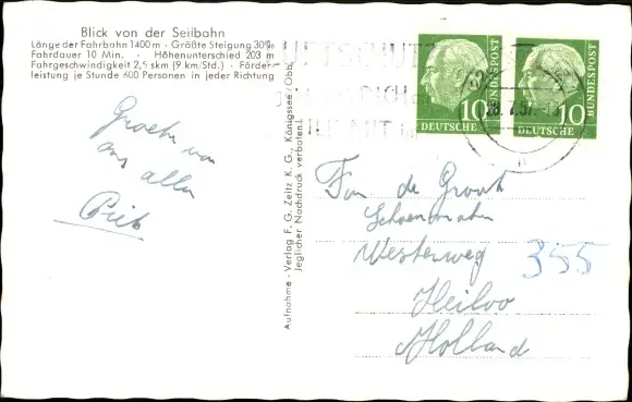 Zustand, siehe Scan, gelaufen, 1957 - ca 14 cm X 9 cm