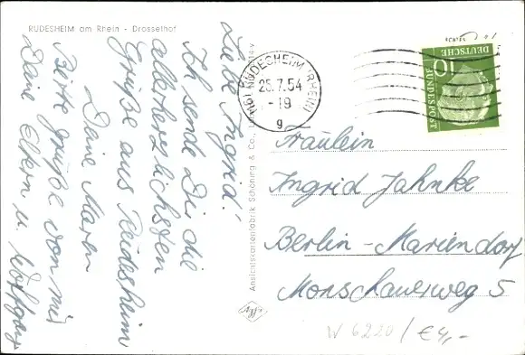 Zustand, siehe Scan, gelaufen, 1954 - ca 14 cm X 10 cm