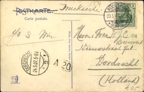 Zustand siehe Scan, gelaufen, 1907 - ca 14 cm X 9 cm