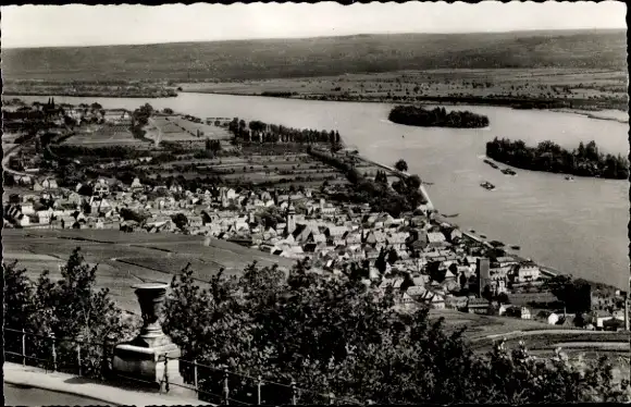 Ak Rüdesheim am Rhein, Gesamtansicht, Rheininseln