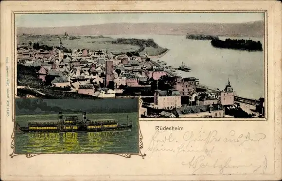 Ak Rüdesheim am Rhein, Gesamtansicht, Schiff
