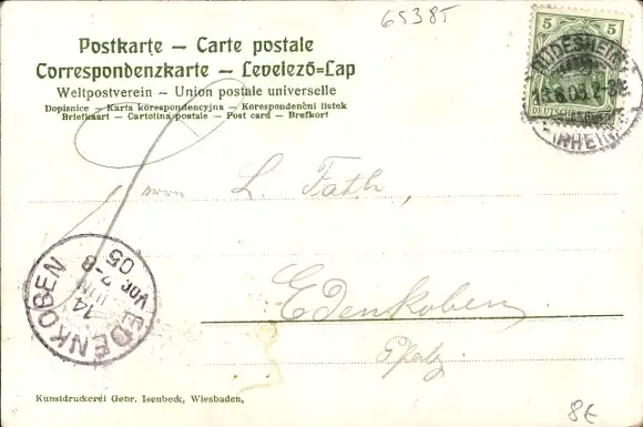 Zustand, siehe Scan, gelaufen, 1905 - ca 14 cm X 9 cm