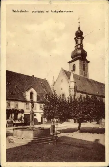 Ak Rüdesheim am Rhein, Marktplatz mit Pankgrafenbrunnen