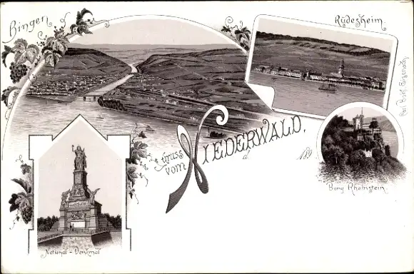 Ak Rüdesheim am Rhein, Niederwald, Burg Rheinstein, Denkmal