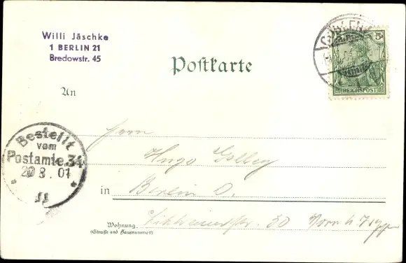 Zustand, siehe Scan, gelaufen, 1901 - ca 9 cm X 14 cm