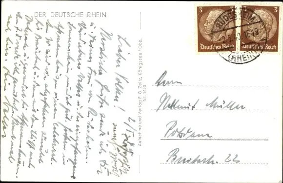 Zustand, siehe Scan, gelaufen, 1940 - ca 14 cm X 9 cm