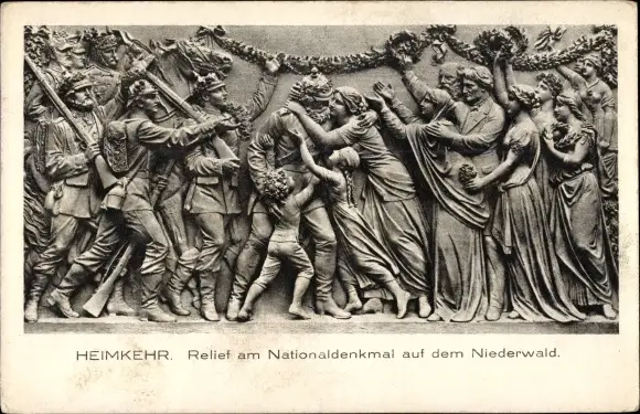 Ak Rüdesheim am Rhein, Niederwald Nationaldenkmal, Relief Heimkehr