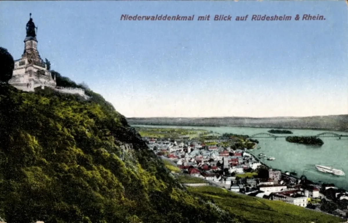 Ak Rüdesheim am Rhein, Niederwalddenkmal, Blick auf Rüdesheim, Rhein, Landschaft