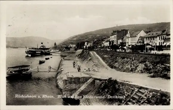 Ak Rüdesheim am Rhein, Niederwalddenkmal, Dampfer, Promenade