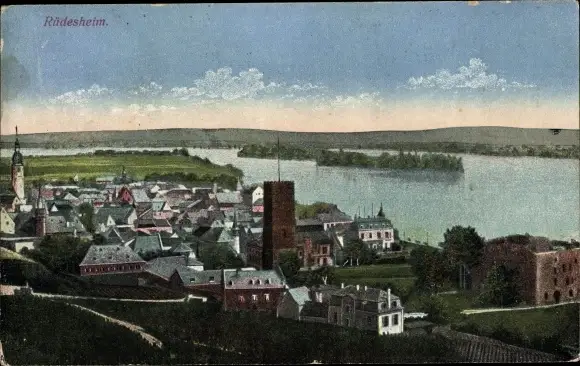 Ak Rüdesheim am Rhein, Panorama, Kirchturm