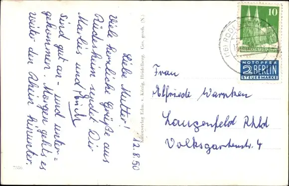 Zustand, siehe Scan, gelaufen, 1950 - ca 14 cm X 9 cm