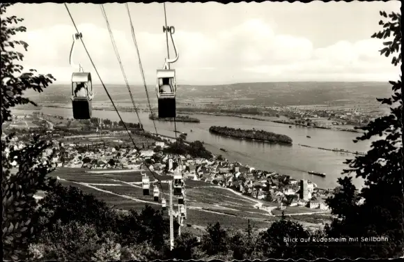 Ak Rüdesheim am Rhein, Panorama mit Seilbahn