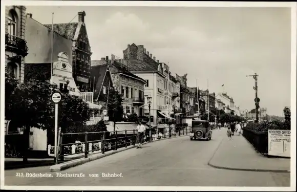 Ak Rüdesheim am Rhein, Rheinstraße, Hotel Traube, Germania, Häuserfassaden