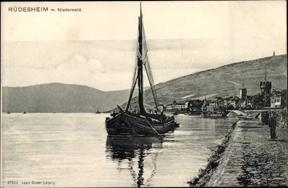 Ak Rüdesheim am Rhein, Rheinufer, Niederwalddenkmal