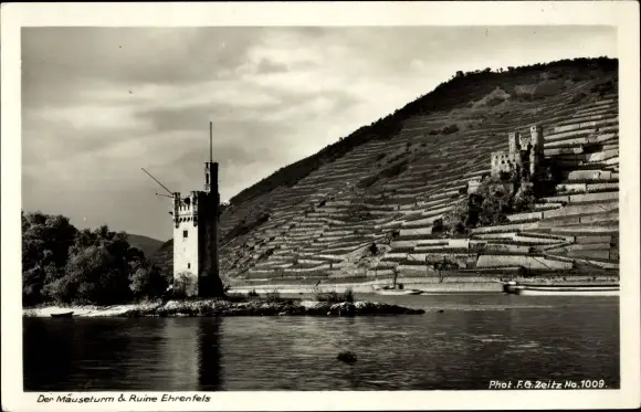 Ak Rüdesheim am Rhein, Ruine Ehrenfels, Mäuseturm