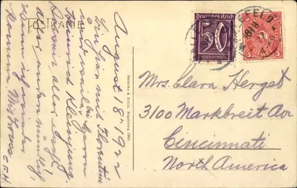 Zustand, siehe Scan, gelaufen, 1922 - ca 14 cm X 9 cm